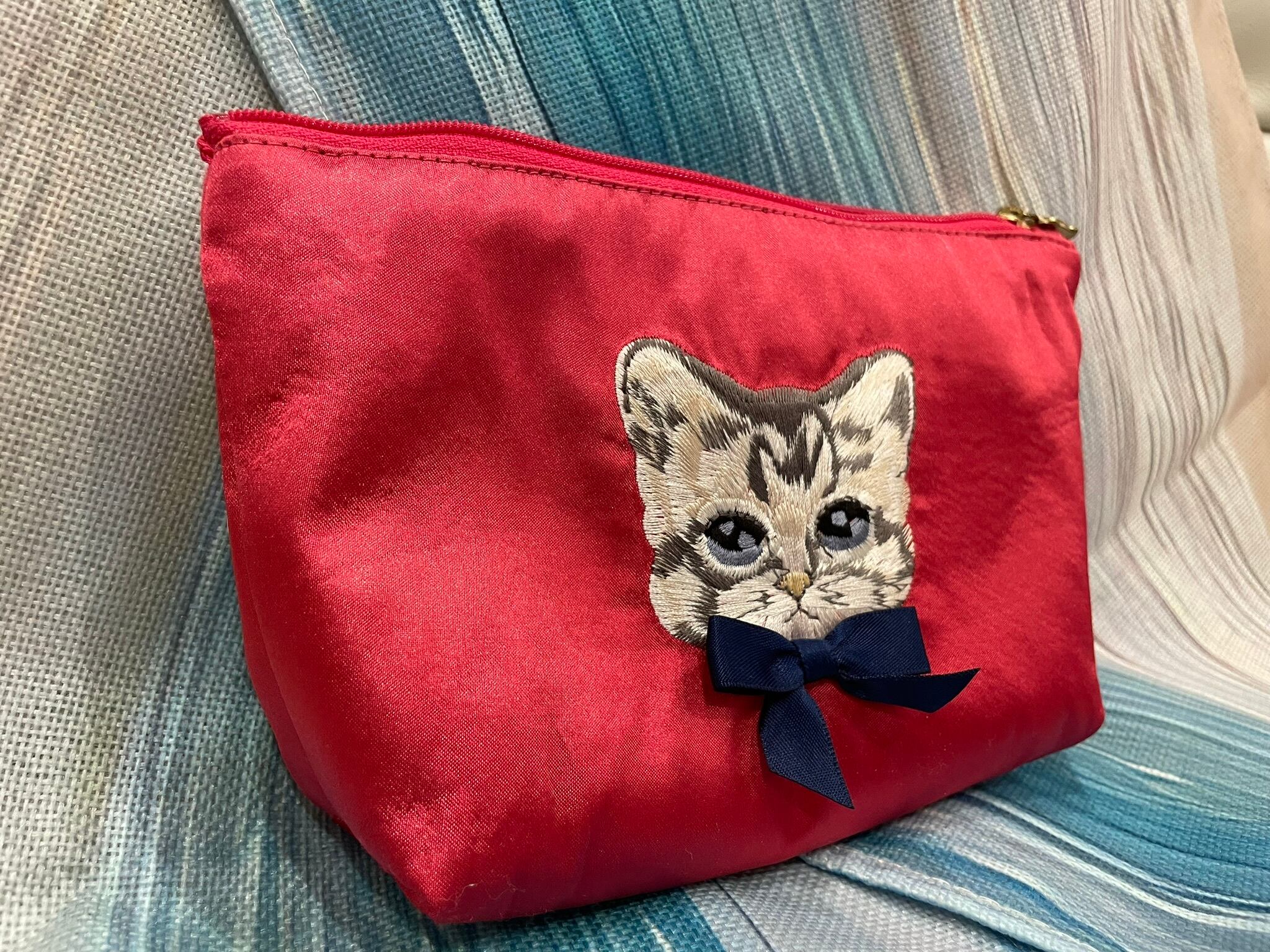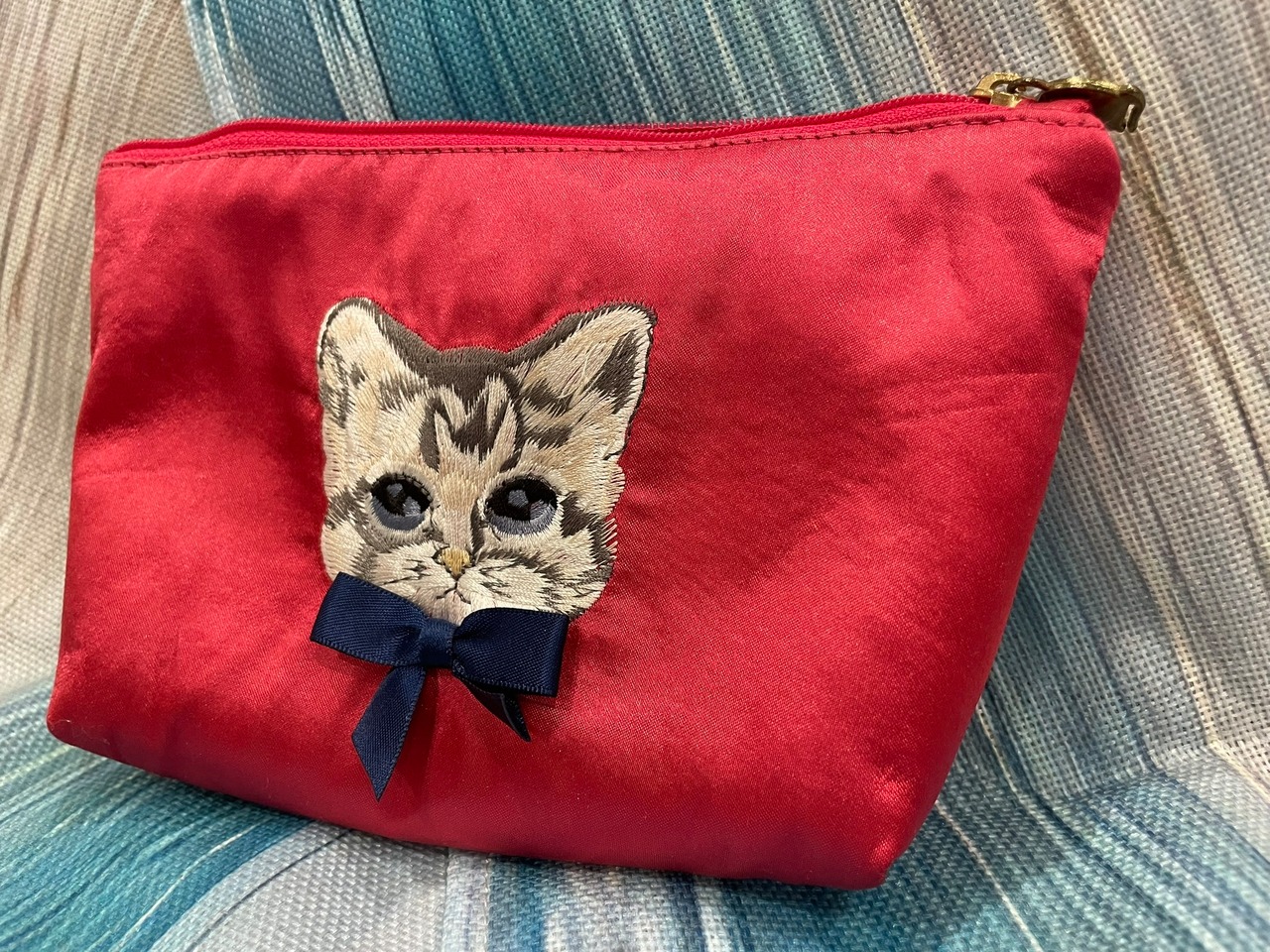 繊細な手仕事によって生み出されたこのポーチは、一つ一つが丁寧に製作されています。猫好きやアニマルモチーフが好きな方にとって、心躍る一品となること間違いありません。