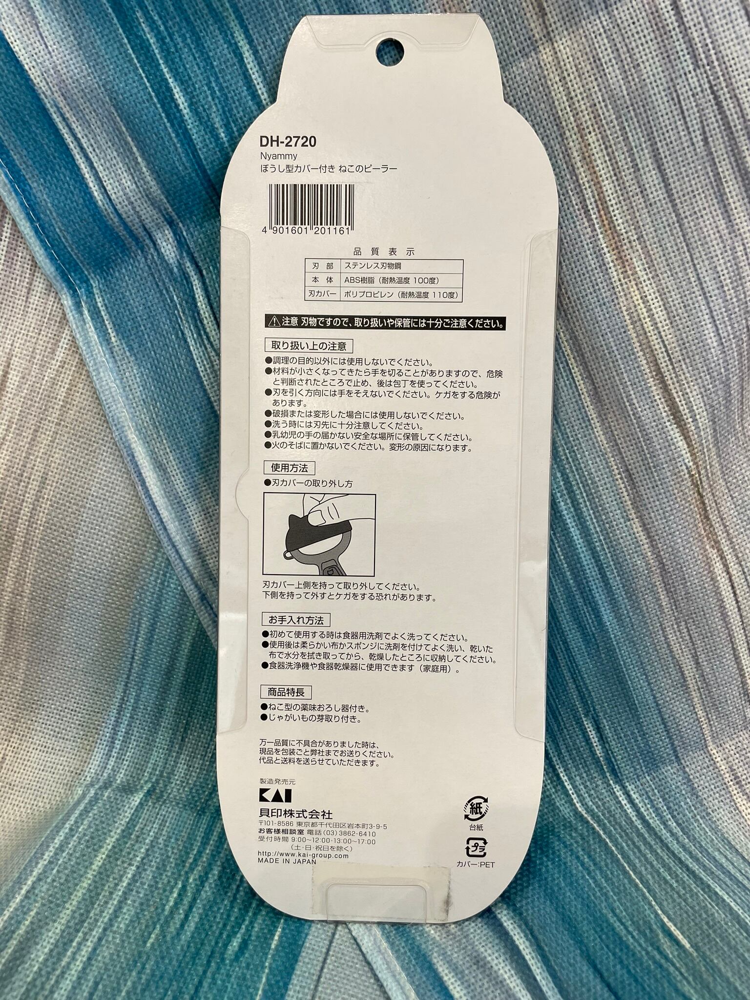 この「ニャミー ぼうし型カバー付ピーラー Nyammy DH-2720」は、可愛らしい猫のぼうし型カバーが付いている便利なキッチンアイテムです。ピーラー部分は刃が鋭く、野菜や果物を簡単に皮をむくことができます。また、ぼうし型のカバーは使わないときに安全に収納することができ、キッチンでの収納時も可愛いアクセントになります。