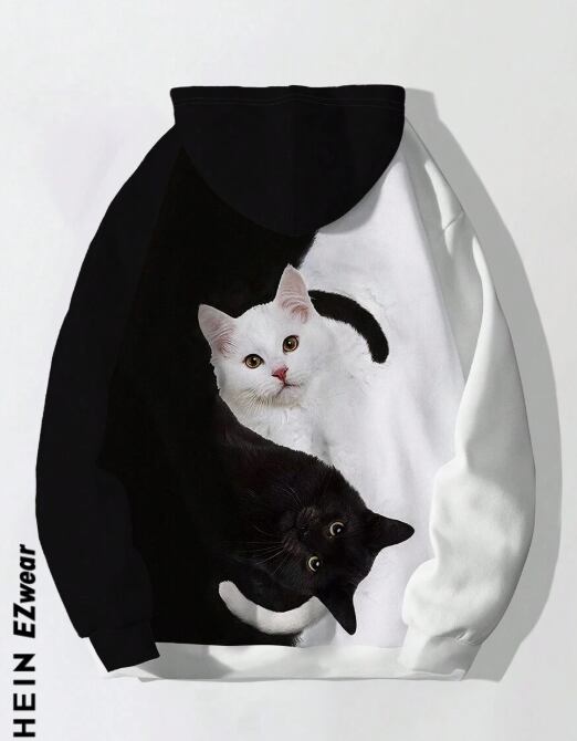 この猫プリントポケット付き カジュアル長袖パーカーで、日常のファッションに楽しさと可愛らしさをプラスしてみませんか?お友達や家族へのギフトとしても喜ばれるオススメ商品です!お気に入りの一枚になること間違いなしです。