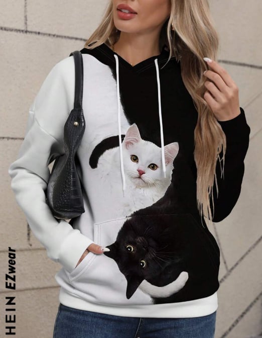 愛らしい猫プリントと便利なポケットが特徴のレディースカジュアル長袖パーカーが新登場!このパーカーは普段使いからお友達とのカジュアルなお出かけまで幅広く活躍し、あなたのスタイルを一層引き立てることでしょう。快適にリラックスしたい時にもぴったりのアイテムです。